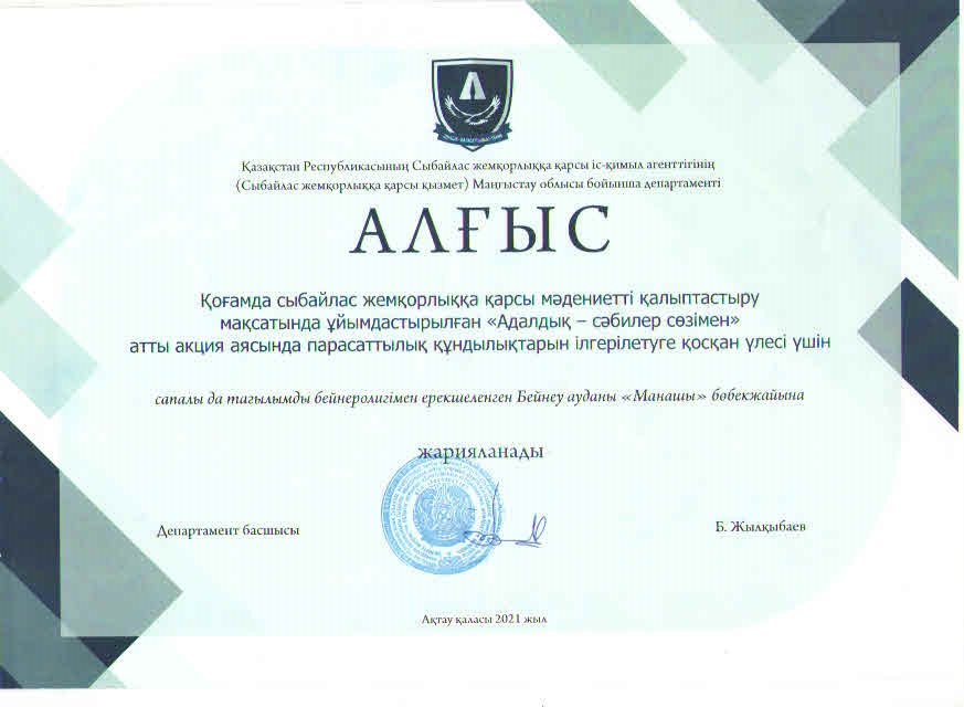 "Манашы" бөбекжайы" ЖБҚ МКҚК